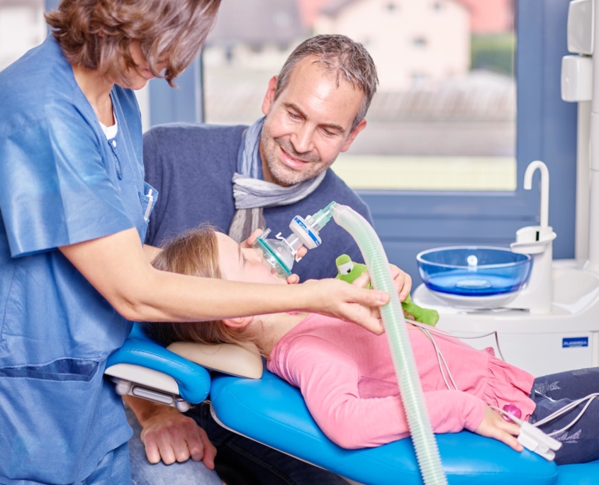 Ihr Kind schläft in Ihrer Anwesenheit ein. Während der ganzen Zahnbehandlung überwacht das Anästhesieteam Ihr Kind. Im Aufwachraum sind Sie wieder dabei, wenn Ihr Kind aufwacht.